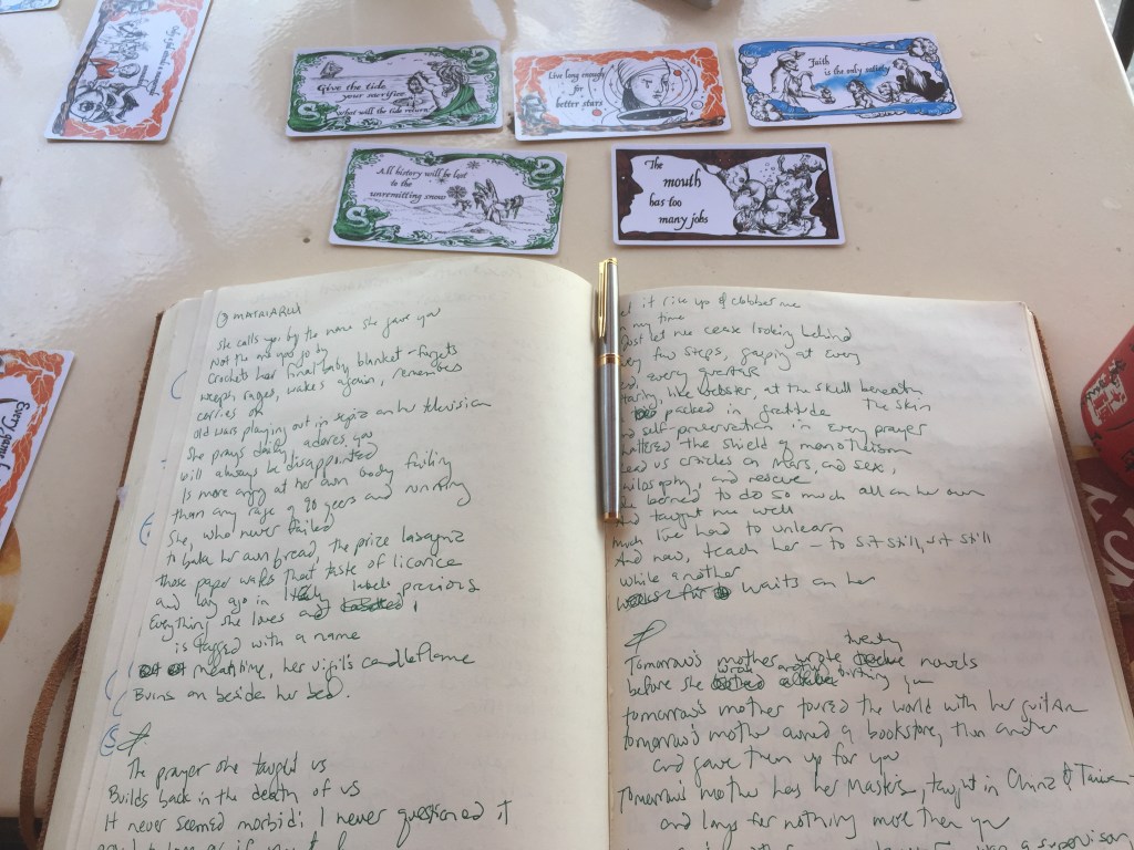 Both Claire and I found these poems difficult to write, but cathartic, too. The cards continue to serve as mechanical muses for us.