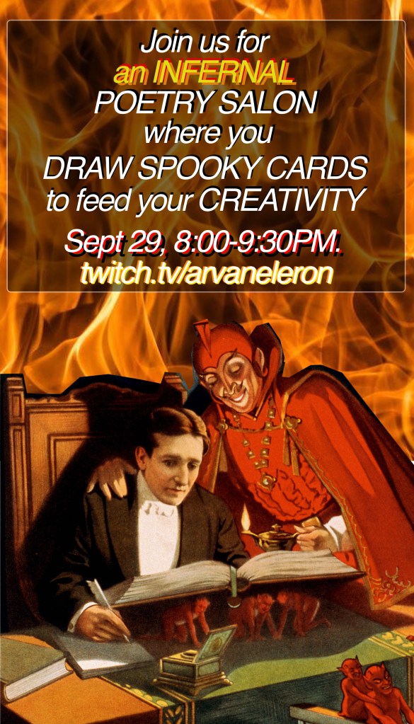 Some poets from our infamous (LOL) SITZFLEISCH POETRY HOUR and a few other verse-minded friends will be participating in an ALL-POET INFERNAL SALON!